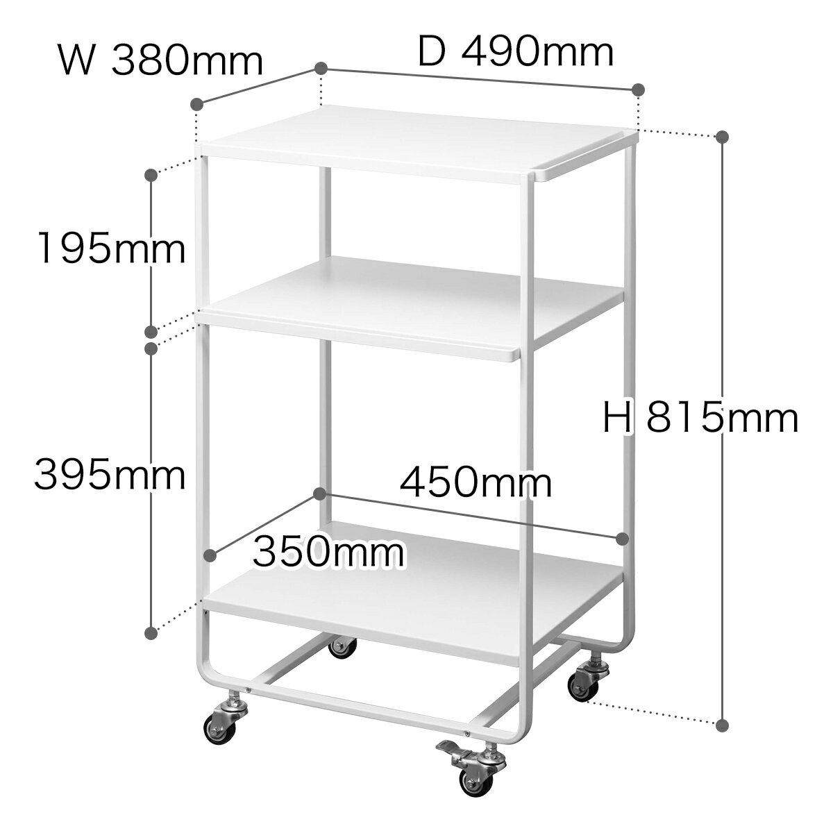 品番 4918 / 4919 サイズ 約 幅 380mm×奥行き 490mm×高さ 815mm( キャスター含む ) 天板:約 幅 350×奥行き 450mm [ 内寸 ] 上段:約 幅 350mm×奥行き 450mm×高さ 195mm 下段:約 幅 350mm×奥行き 450mm×高さ 395mm ハンドルの隙間:約 25mm 中段棚バーの隙間:約 15mm 重さ 約 6.2kg 素材 本体:スチール( 粉体塗装 ) キャスター:スチール / 合成ゴム 耐荷重 天板、上段、下段:各 約 4kg フック1つあたり:約 250g 付属品 スパナ、フック×4 ご注意 ※サイズは個体により若干差異が生じることがあります。