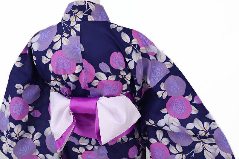 浴衣 レディース フリーサイズ 単品 紺地 紺 青 薔薇 バラ 夏祭り 花火大会 エレガント オシャレ 可愛い 大人可愛い 大人 No.11-0052t サイズ表 フリーサイズ ≪適応身長152〜168cm≫ 長さは着用時に調整可能です。